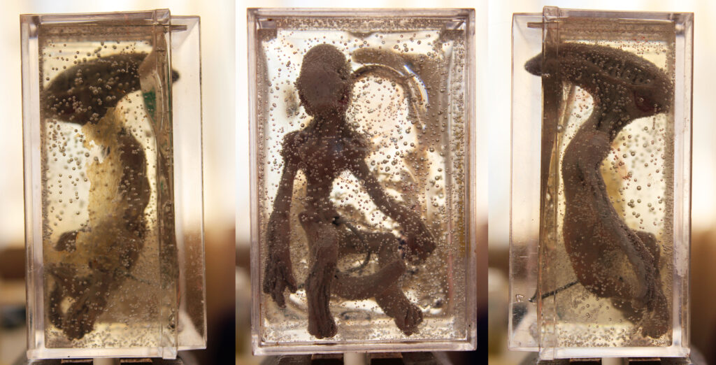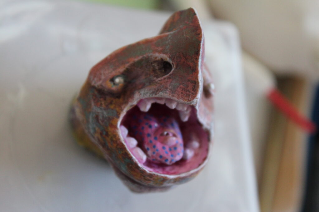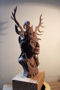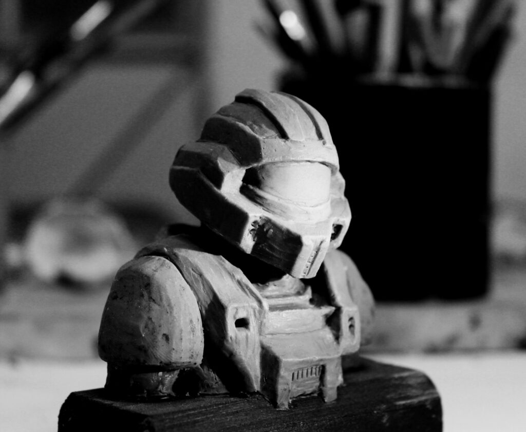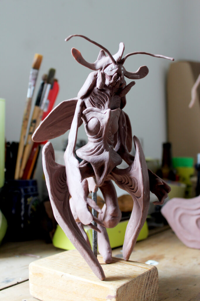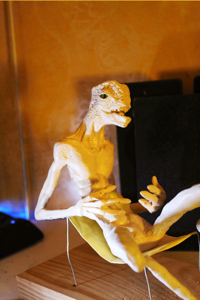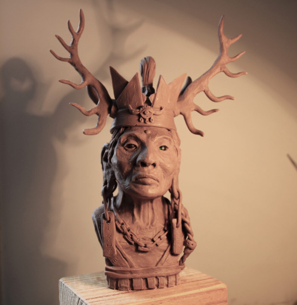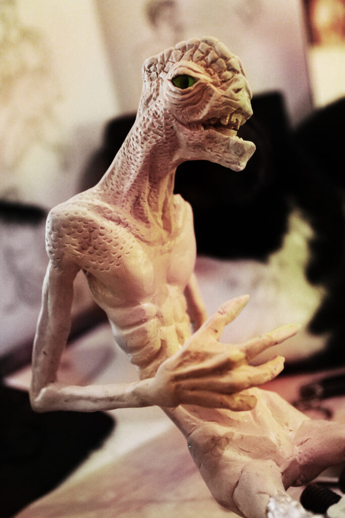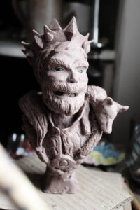 J’ai commencé à travailler le volume très jeune pour modifier mes figurines et jouet d’enfance, puis j’ai connu l’univers des jeux de rôles et de plateaux, jusqu’aux Warhammer. C’est pour mon diplôme d’école d’art que je suis retourné sur la sculpture en façonnant un diorama et un mini-film d’animation en Stop-motion d’un personnage en Fimo articulé. J’ai ensuite découvert le métier d’artiste FX et j’ai commencé, dans le but de me faire un portfolio, à fabriquer des prothèses et masque pour des accessoires de cinéma et cosplay. La Monster Clay, la base de beaucoup de mes travaux de l’époque est la matière que j’ai le plus modelé avec l’argile.
